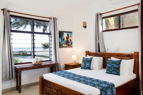 Enjoy the large gazebo with spectacular ocean views fitted with "Swahili" day beds, a beautiful garden, swimming pool, and private access to a pristine beach.